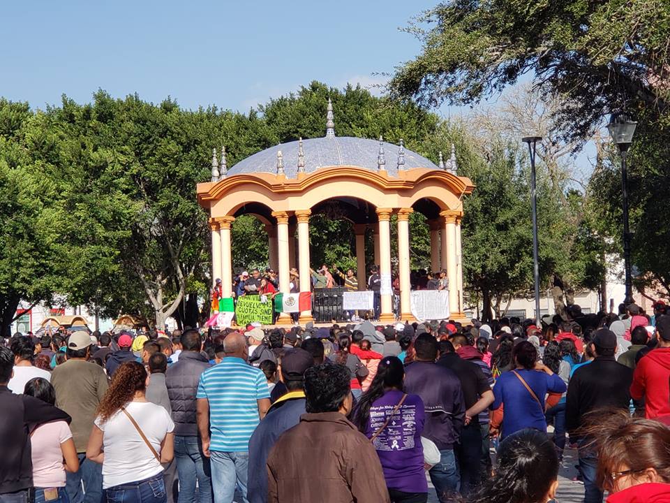 Reunidos en la plaza principal, ya con menos gente, Prieto Terraza exhortó a quienes estaban reunidos, a que de forma de comisión llevaran un mensaje a sus compañeros para que se retiren los plantones que tienen en las afueras de las maquiladoras.