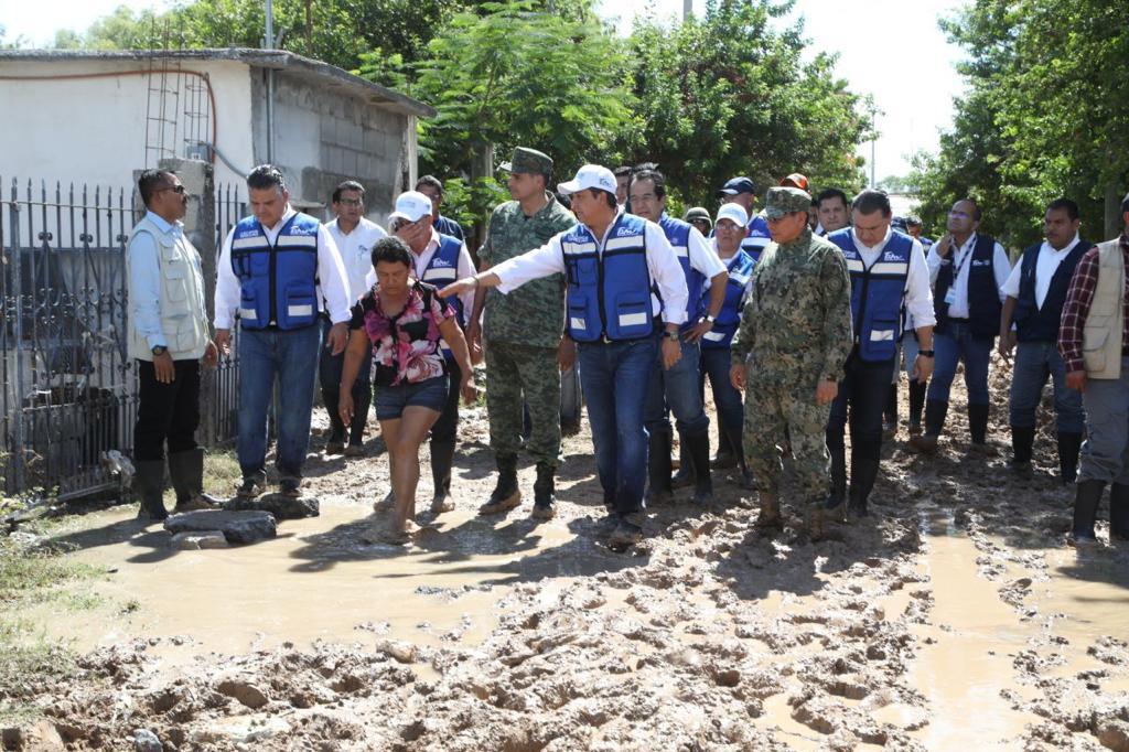 Acompañador de los jefes militares; así como funcionarios del Estado, García Cabeza de Vaca habló con las familias que fueron afecatadas y que se encontraban bajo el agua o lodo, debido a la inundación que todavía se tiene en los sectores bajos.