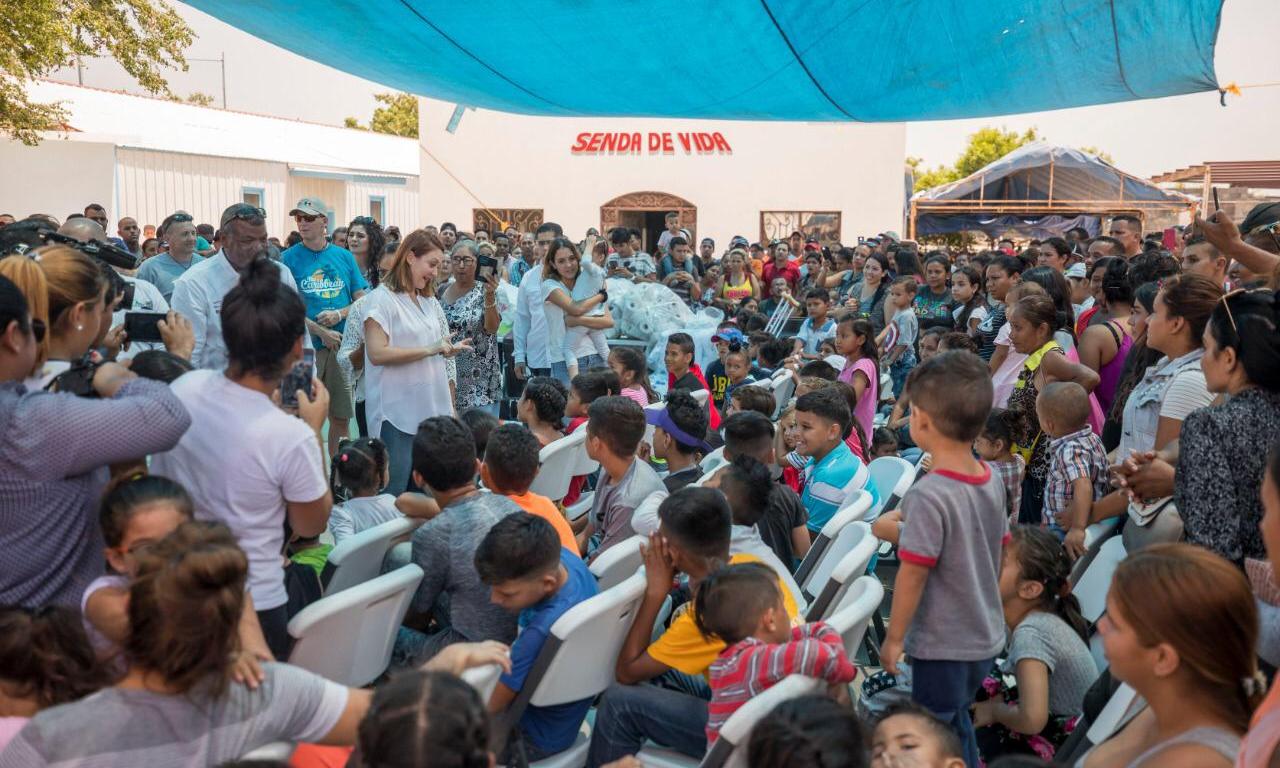 Reynosa, Tamaulipas.- Mariana Gómez de García Cabeza de Vaca, Presidenta del DIF Tamaulipas, visitó las instalaciones del albergue para migrantes “Senda de Vida”, que desde hace meses se ha convertido en el hogar de más de mil migrantes de al menos una decena de nacionalidades que quieren llegar a Estados Unidos en busca de asilo.