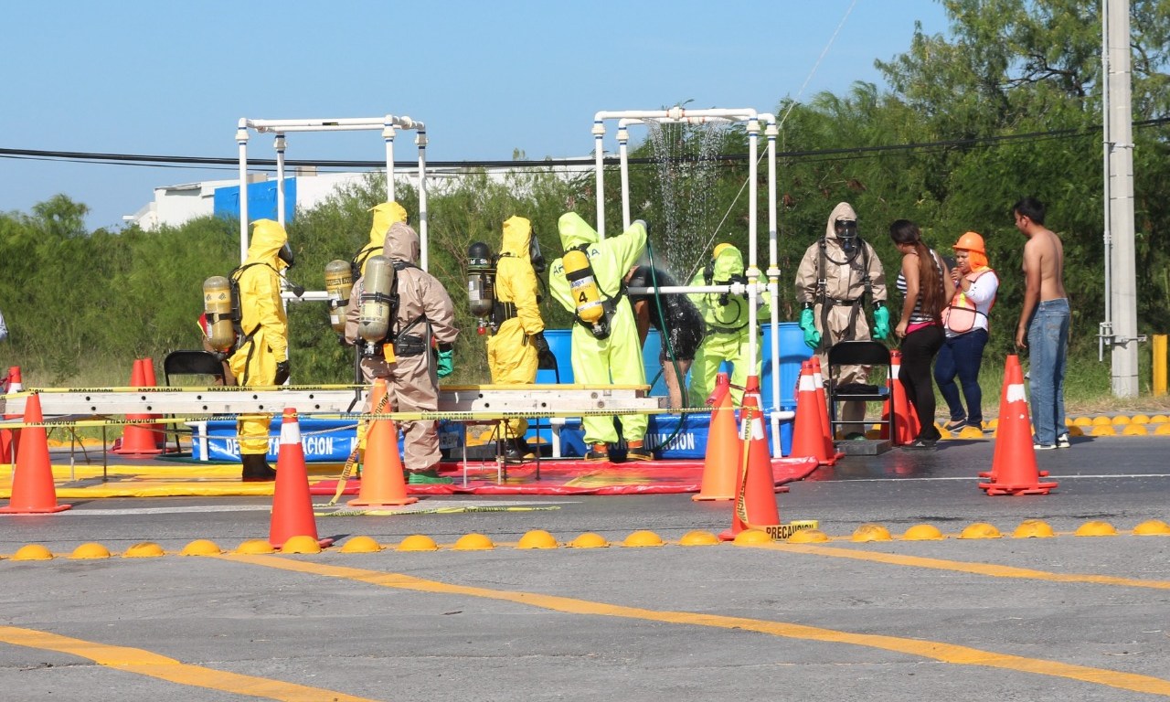 Con destacada participación en la que quedó demostrada la preparación y la eficiencia para atender situaciones de fuga de materiales peligrosos de los equipos de seguridad de empresas maquiladoras y Junta de Aguas y Drenaje integrados en el Comité de Local de Ayuda Mutua (CLAM).