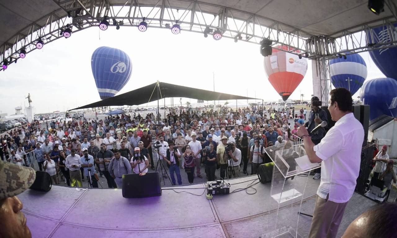 Teniendo como marco los imponentes globos aerostáticos y en presencia de empresarios, autoridades civiles, militares y cientos de familias matamorenses, López Hernández dijo que Matamoros es una ciudad bendecida porque tiene una playa Bagdad hermosa, que muchos otros municipios del país desearían tener.