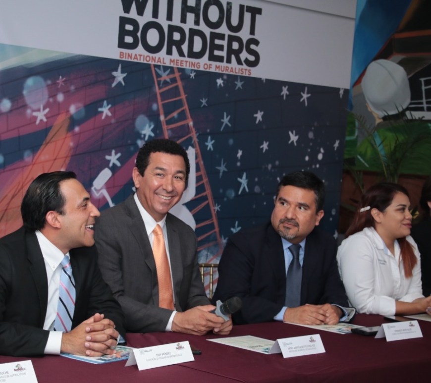 En una franca muestra de relación de amistad entre dos ciudades hermanas, el alcalde de Matamoros, Mario Alberto López Hernández y el Mayor de Brownsville, Texas, Trey Méndez presentaron en las dos ciudades, la convocatoria que sienta las bases para realizar un Encuentro Binacional de Muralistas, con enfoque a un mundo sin fronteras. Este jueves por la mañana, el Presidente Municipal de Matamoros se trasladó … Continúa leyendo Respaldan alcalde Mario López y Trey Méndez,Mayor de Brownsville, un mundo sin fronteras