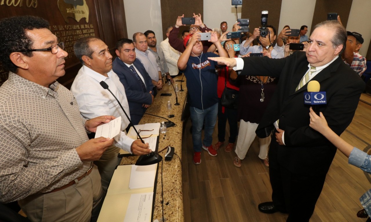Luego de que el Cabildo aprobó las propuestas, el Alcalde Mario Alberto López Hernández tomó la protesta por separado, a los dos nuevos funcionarios.