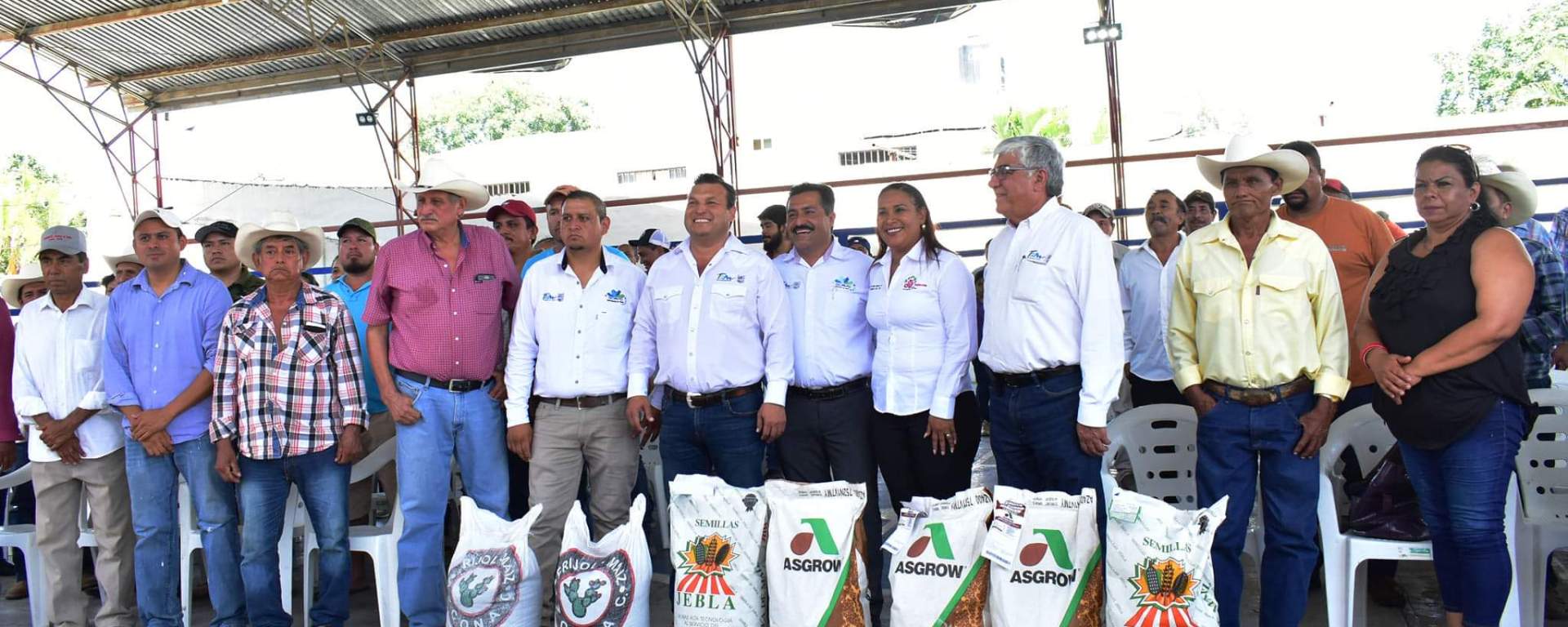 La entrega fue realizada en presencia del alcalde Jesús Ávalos Puente, de su esposa Brenda Coronado Molina y demás funcionarios municipales en la explanada de la presidencia municipal, donde se dieron cita cerca de 74 agricultores quienes recibieron en total 293 sacos de semilla certificada; un apoyo para amortiguar los gastos de producción.