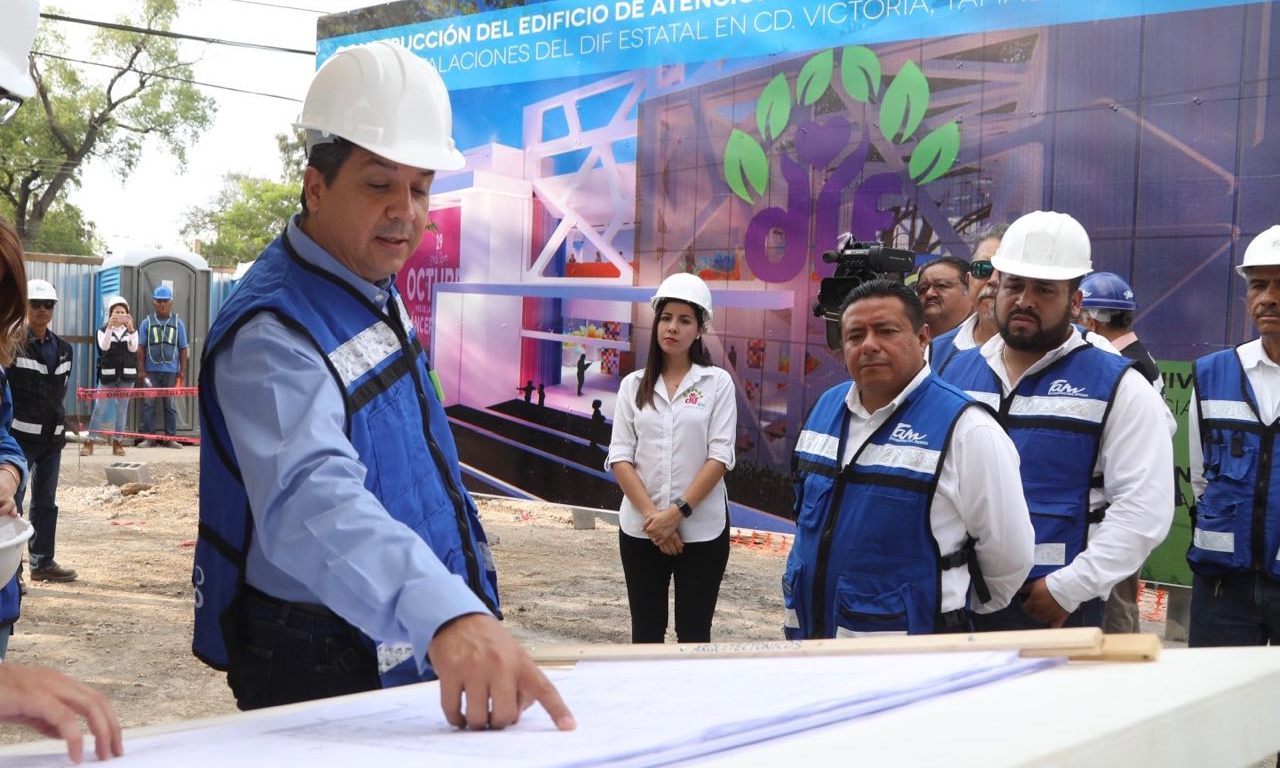 Ciudad Victoria, Tamaulipas.- El Gobernador, Francisco García Cabeza de Vaca, supervisó en compañía de su esposa, Mariana Gómez de García Cabeza de Vaca, el avance de construcción de la primera etapa del edificio de Atención Ciudadana en las instalaciones que el Sistema DIF Tamaulipas tiene en esta capital.