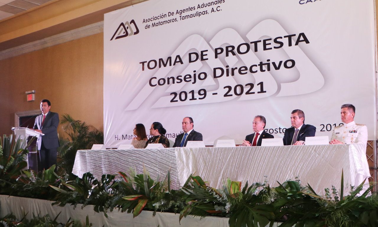 Al asistir a la toma de protesta de la nueva directiva de la Asociación de Agentes Aduanales de Matamoros, el alcalde Mario Alberto López Hernández convocó a los empresarios a unirse todos en una línea transversal “agarrados de la mano, con buenos pensamientos e invertir apasionadamente en esta nación, que hoy transita por momentos de cambio”.