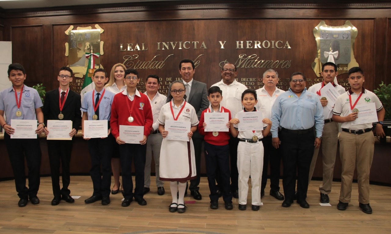 Al hacer entrega de medallas y reconocimientos a alumnos destacados en las áreas académica y deportiva que con patriotismo y honor, han representado a esta ciudad en encuentros locales, estatales, nacionales e internacionales, el alcalde Mario Alberto López Hernández les expresó que son ejemplo, orgullo, y representan al Matamoros extraordinario.