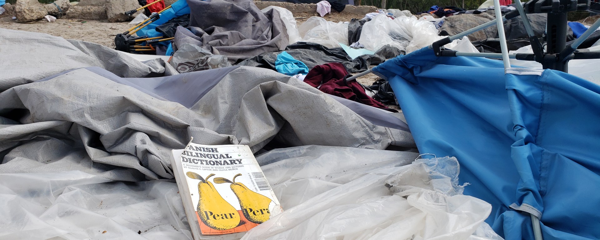 Durante el recorrido por el campamentos, se pudo observar como quedaron las casas de campaña destruidas, así como algunos artículos personas que dejaron los migrantes en ese sector.