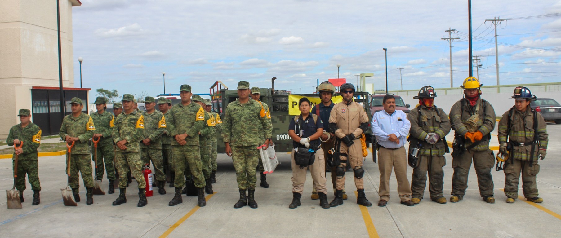 En el Campo Militar de la 8va Zona Militar la Secretaría de la Defensa Nacional (SEDENA) junto a corporaciones de Protección Civil y Bomberos, participaron en el Simulacro Nacional correspondiente al Plan de aplicación DN-3E.