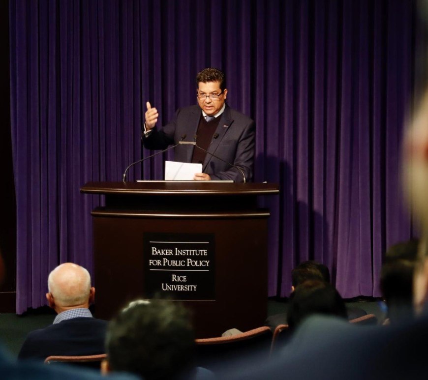 Fue invitado por el Instituto Baker de la Universidad Rice, una de las más prestigiosas de Estados Unidos, para hablar del desarrollo y oportunidades de Tamaulipas. Houston, Tx. El gobernador Francisco García Cabeza de Vaca realizó una visita de trabajo a la ciudad de Houston, donde presentó una ponencia sobre las ventajas económicas de Tamaulipas, retos y avances en materia de seguridad pública, migración, comercio … Continúa leyendo Expone Gobernador ventajas económicas de Tamaulipas en Houston