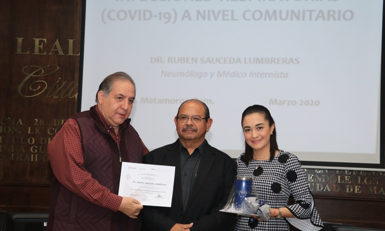 El Dr. Rubén Sauceda Lumbreras, Neumólogo y Médico Internista, fue el encargado de desarrollar esta plática con funcionarios municipales, advirtiendo del grave peligro que representa el desconocer la información necesaria para evitar el contagio.