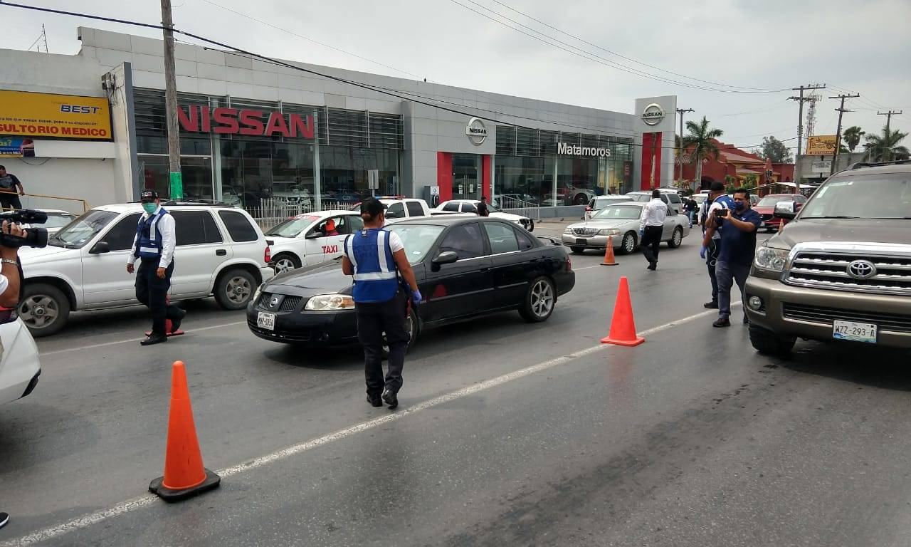En un esfuerzo más por contener el contagio masivo de coronavirus, elementos de Tránsito Local realizaron un operativo en la calle Sexta y boulevard Manuel Cavazos Lerma para hacer entrega de cubre bocas a los automovilistas que no portaran uno, y exhortarlos a que se queden en casa.