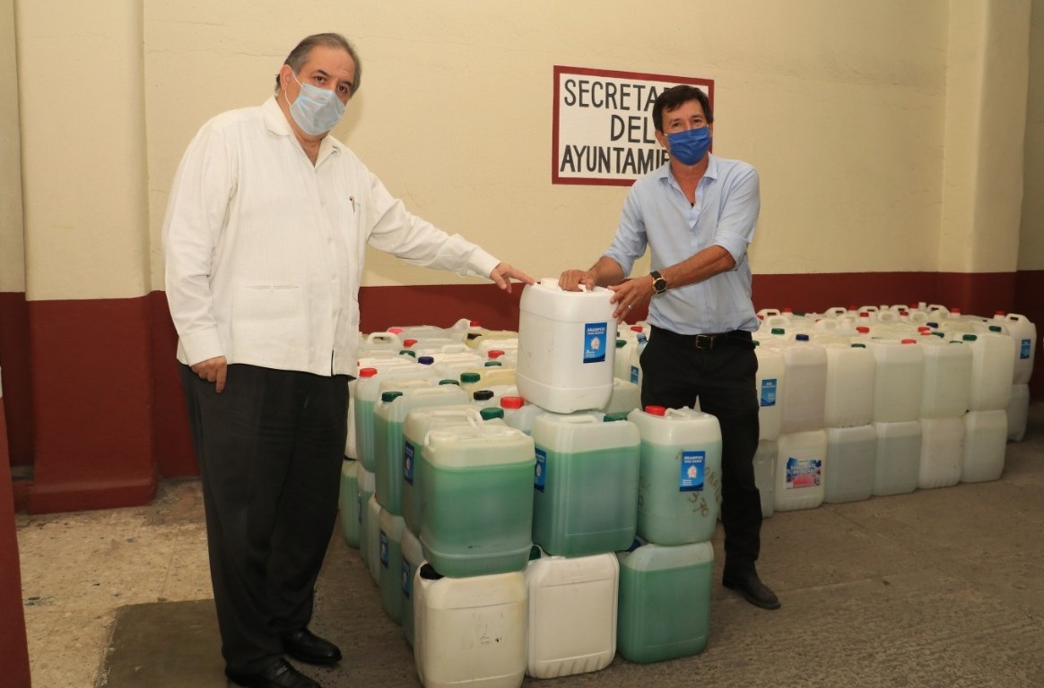 A nombre del Alcalde, el Secretario del Ayuntamiento agradeció la donación consistente en 2 mil litros de gel antibacterial, mil 500 litros de jabón y 200 litros de cloro que serán entregados a las familias de Matamoros, así como también a la Secretaría de Salud Municipal para las acciones que realiza para contener el coronavirus.