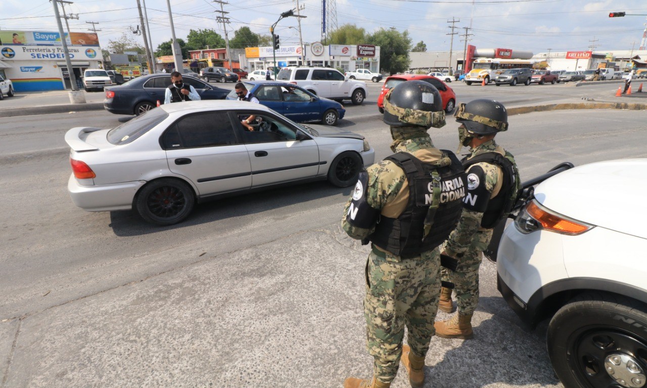 Y cumpliendo la instrucción del Presidente Municipal, los elementos de Vigilancia Municipal de la Secretaría de Seguridad Pública, de la Dirección de Tránsito y Vialidad coordinadamente con el Ejército, Marina, Guardia Nacional, Policía Federal y Policía Estatal se apostaron este miércoles en el crucero de Sendero Nacional y Constituyentes.