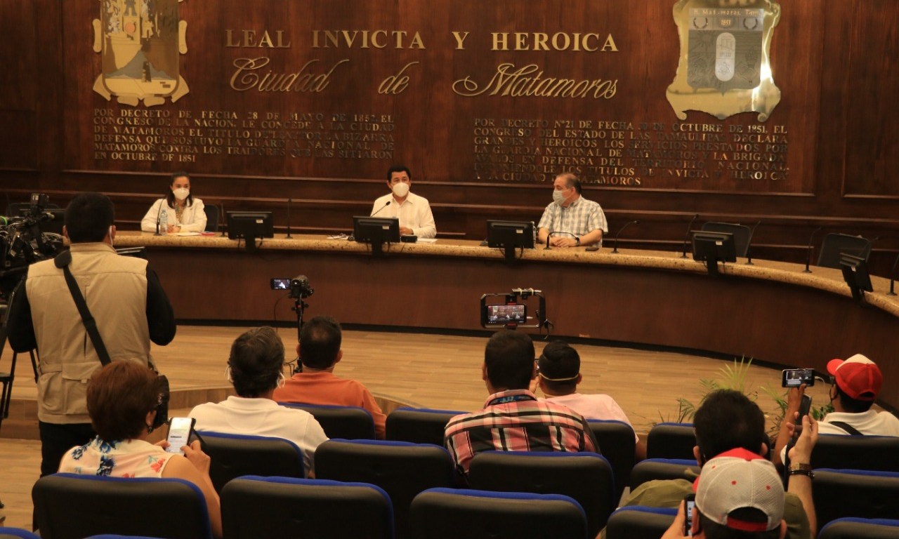 En conferencia de prensa el alcalde Mario Alberto López Hernández puntualizó cinco acciones de gran relevancia que forman parte estrategia para contener el COVID-19 que hasta este miércoles sumaba los 272 casos positivos y 26 defunciones en Matamoros.