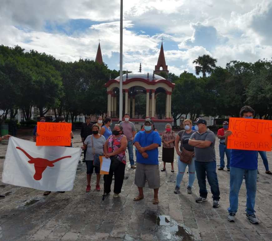 Por: Juan José Ramírez Comerciantes de varios tianguis de la cuidad; así como comerciantes organizados de la zona centro, se manifestaron este lunes debido a que no les han dejado abrir sus negocios desde hace dos mes por la contigencia. Apostadores por la mañana en la Plaza Principal de Matamoros, los tianguistas aseguraron que ya no tienen que comer, por lo que les urge que … Continúa leyendo Protestan tianguistas y comerciantes de la zona centro de Matamoros
