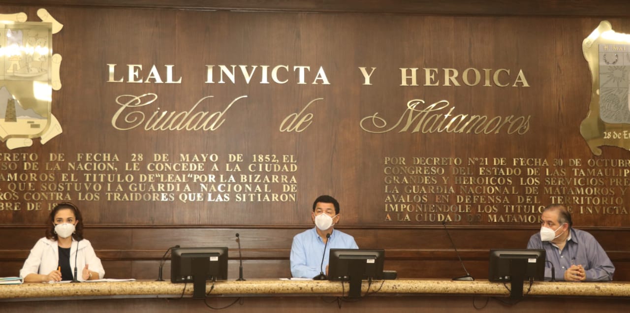 El alcalde Mario Alberto López Hernández anunció en conferencia de prensa sobre un posible brote epidemiológico de COVID-19 en tres áreas de la Presidencia Municipal de Matamoros, en donde se han presentado dos casos positivos de coronavirus y ocho casos sospechosos, motivo por el cual, los empleados que al día de hoy presentan sintomatología leve, se encuentran en resguardo domiciliario.