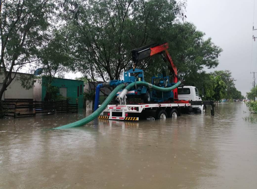 En estos sitios, personal de la Comisión Estatal del Agua, Secretaría de Desarrollo Urbano y Medio Ambiente, así como de la Comisión Nacional del Agua, entre otras, trabajan desde ayer para desfogarlas, con apoyo de 8 retroexcavadoras, 6 pipas, 5 camiones, 10 bombas de desagüe y 10 bombas pequeñas para desaguar viviendas.