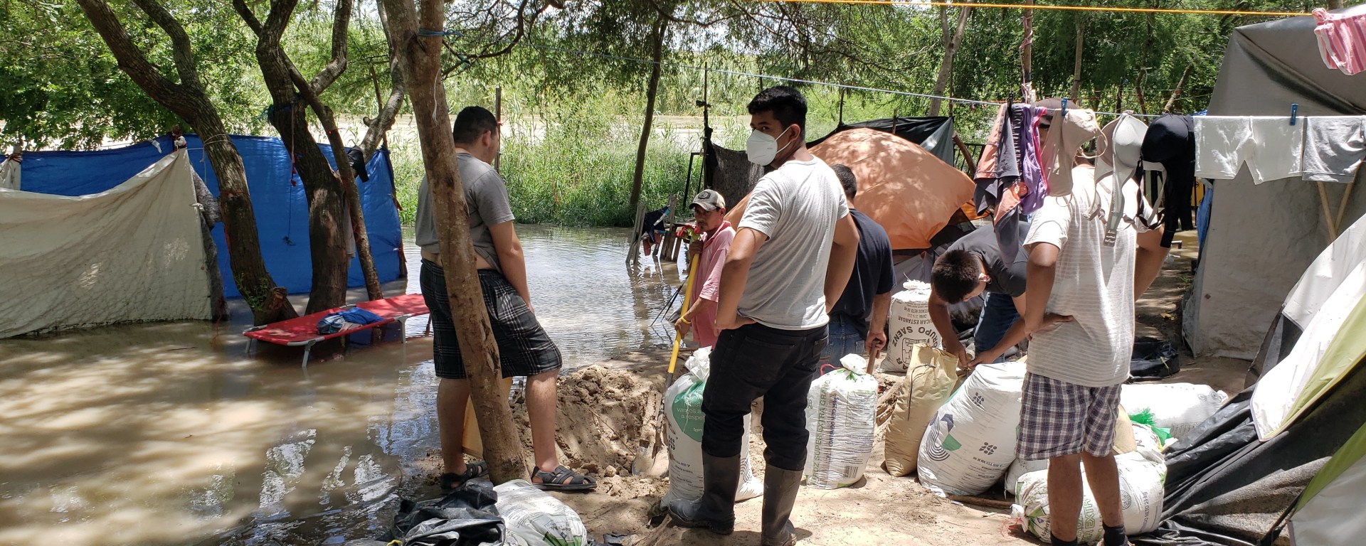 A pasar que había impedimiento de poder accesar al campamento de migrantes ante la creciente que se tiene en el rio Bravo, se pudo observar cómo están sobrevidiendo ante la llegada del desbordamiento.