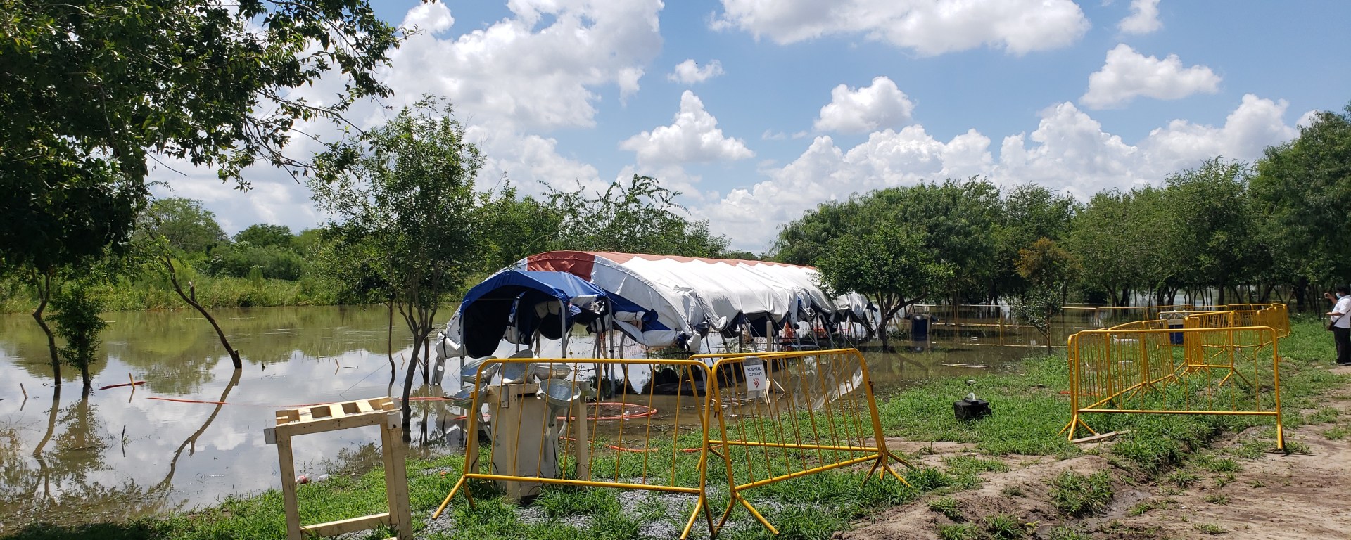 La creciente afectó solo el hospital covid que fue instalado frente al campamento de los migrantes, el cual prácticamente ya se había envacuado desde hace varios días previniendo esta situación.