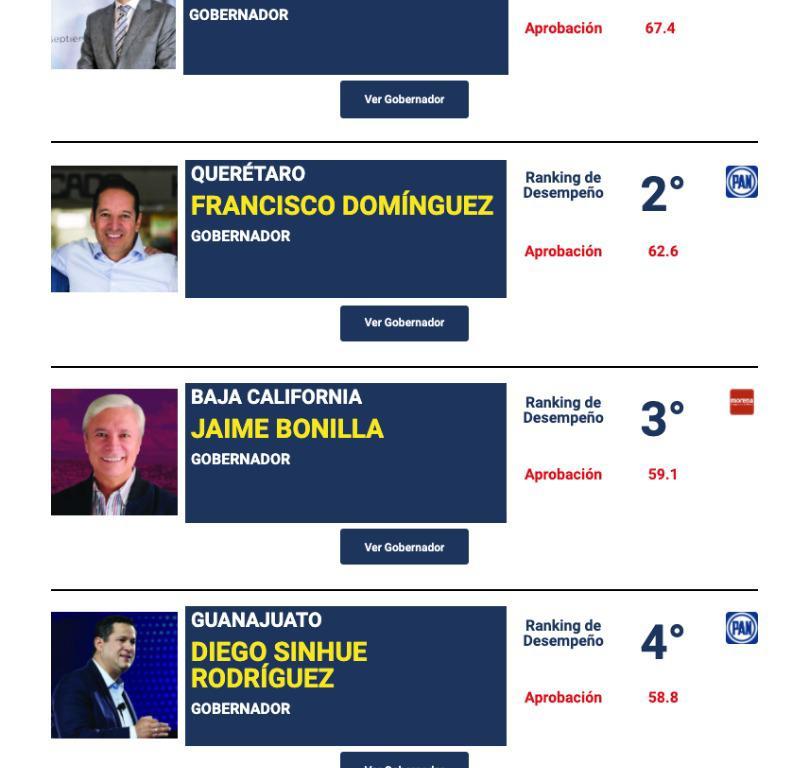Las firmas Arias Consultores y C&E Research divulgaron este lunes los resultados de las encuestas realizadas para medir el desempeño de los Gobernadores y Gobernadora del país, así como de la Jefa de Gobierno de la Ciudad de México.