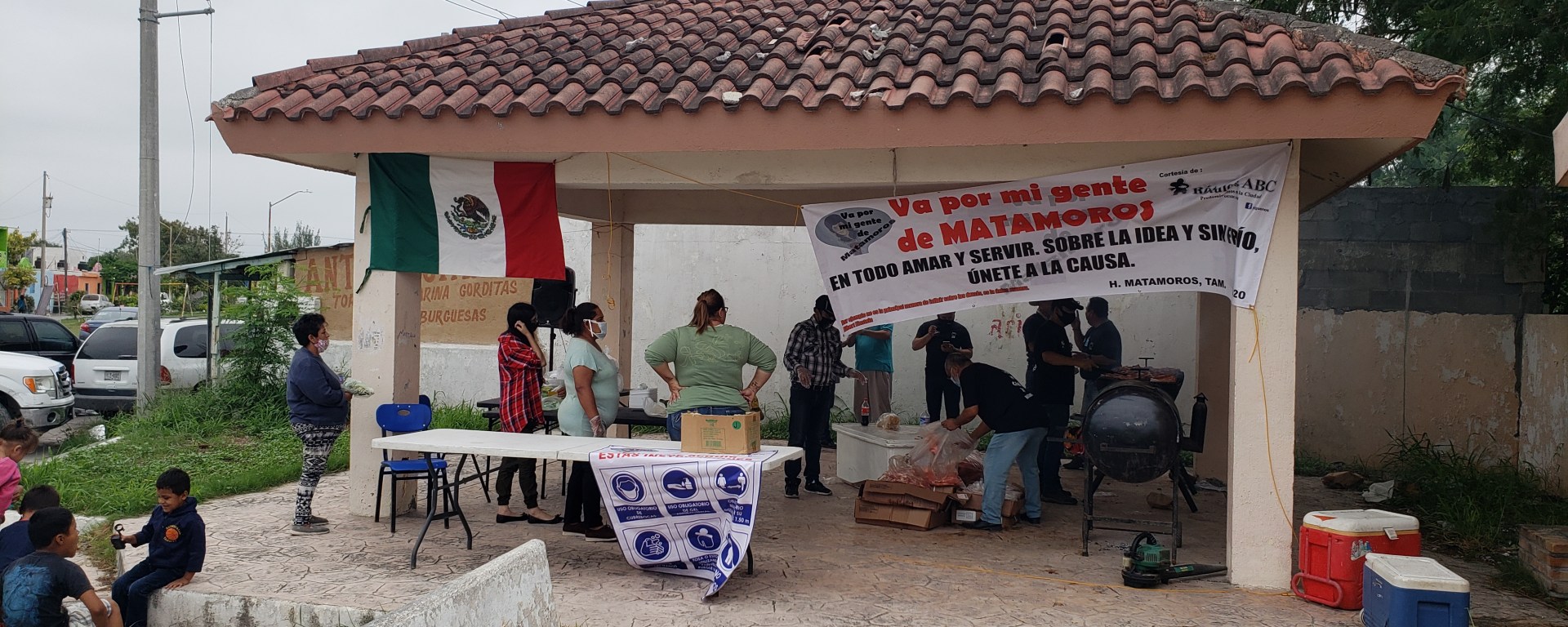 Maestros y profesionistas de Matamoros llevaron su tercera pollada en Matamoros con el fin de ragalar un palatillo a las personas que menos tienen ahora en la colonias Las Brisas.