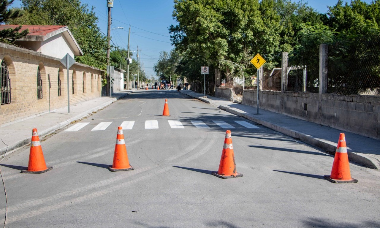El acceso pavimentado es la calle Francisco Guerrero en el tramo de Libramiento Emilio Portes Gil a Perfecto Rodríguez, que representa poco más de 2 mil 940 metros cuadrados, equivalentes a 420.13 metros lineales por 7 metros de ancho.