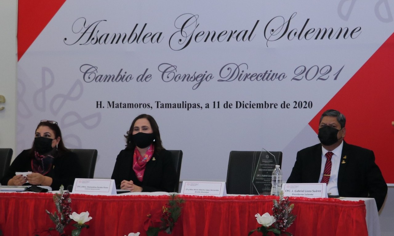 En la Asamblea se contó con la presencia de la Maestra Diamantina Perales Flores, presidenta Nacional del Instituto Mexicano de Contadores Públicos 2019-2022, quien tomó la protesta a Lorena Fernández Alanís, como presidenta del Consejo Directivo en Matamoros para el año 2021.