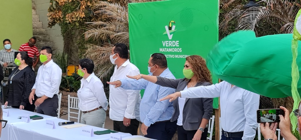 Ricardo Gabiño, coordinador estatal del Partido Verde Ecologista en Tamaulipas, presento a los candidatos que estarán coptiendo a nivel local para la alcladía y las diputaciones locales.El proyecto tendrá como candidato a la alcaldía de Matamoros, Victor Barrientos; por el distrito X Obiel Rodriguez; la diputación por el distrito XI Tere Guillén y Romeo García por el distrito XII en Matamoros.Durante el evento, los candidatos expusieron sus ideas sobre el compromiso de tener la candidatura y sobre todo la confianza que tuvieron en su personas para llevara cabo el proyecto.Karina Ensiginia, dirigente local de Partido Verde Ecologísta se comprometió a llevar a cabl campaña triunfadoras donde dijo: «No cabe duda Matamoros se va a vestir de verde este y de junio».»Nosotros venimos a competir no a jugar con nadie, cada uno de los candidatos se han comprometido a realizar campañas serias hasta llegar al triunfo en esta elección», expresó.Una vez que de les tomó la protesta, los precandidatos recibieron la contancia que los acredita como tales ante el próximo proceso electoral.