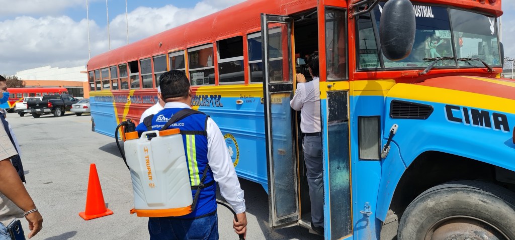 La COEPRIS en Matamoros llevó a cabo la desinfección de varias unidades del transporte público en Matamoros, ya que es el segundo punto donde se registran los contagios del covid-19.Durante la mañana de este jueves, se registró una larga fila de las unidades del transporte público que llegaron a las instalaciones del estacionamiento del Gimnasio de la UAT para llevar a cabo la desinfección.Ricardo González Gamboa, coordinador de la COEPRIS en Matamoros, explicó que ya son varias veces que han llevado a cabo estas acciones con a finalidad de reducir el contagio»Estamos llevando a cabo la desifección de las unidades del transporte público, ya que son puntos muy vulnerables del contagio, por ello es que se realiza la desinfección», expresó.Según las estadisticas que tiene la Secretaría de Salud, el segundo punto de contagio es en el transporte público, es por ello que llevaron a cabo estas acciones, misma que la realizaban de forma rápida.González Gamboa explicó que se estaba desinfectando desde taxis hasta los microbuses o llamadas peseras; las cuales se les pidió que se salieran de ruta momentaneamente.