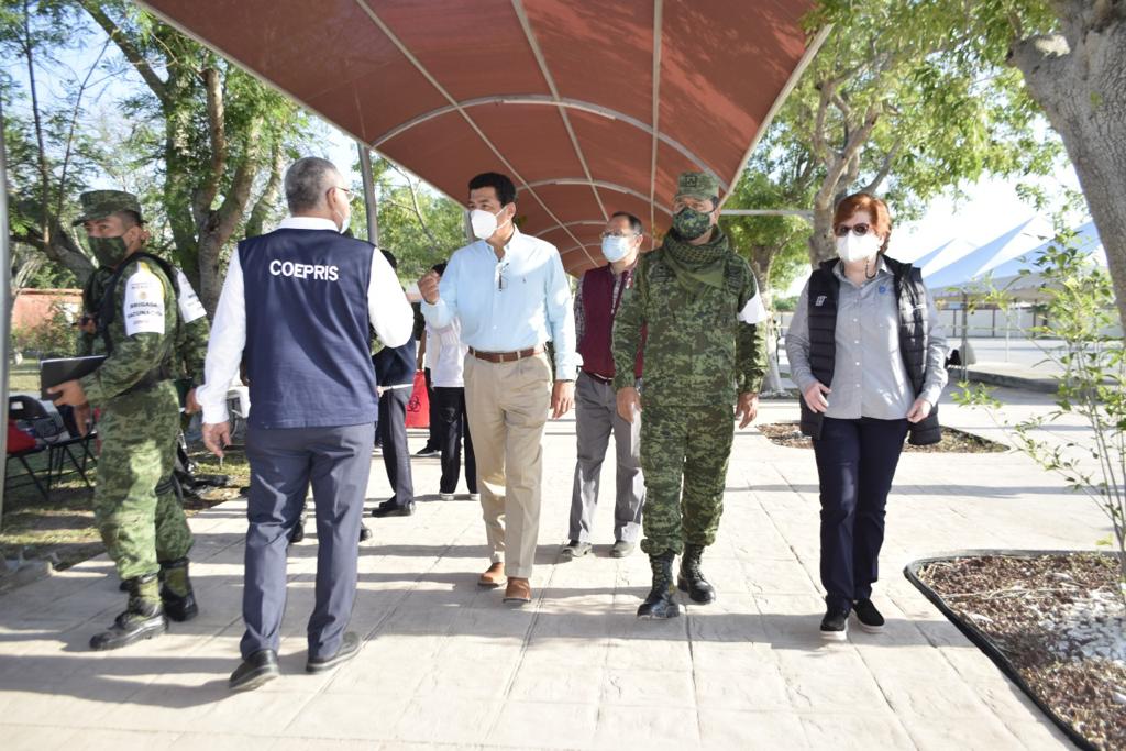 El módulo para la vacunación del personal que labora en instituciones públicas y privadas aperturó conforme a lo programado y son los propios elementos de la SEDENA los responsables de verificar los listados de maestros, en tanto que personal de la Secretaría de Salud aplica el biológico.