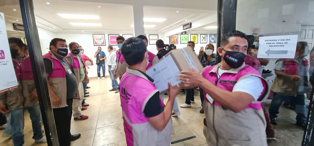 Llegaron a Matamoros las 338 mil boletas elecctorales con las que se podrán elegir a la diputada federal por el distrito 04 electoral, por lo que fueron descargadas por personal de capacitación electoral.El camión de mundanza llegó hasta la zona centro de la ciudad donde se ubica el distrito 04, el cual venía custodiado por el elementos de Tránisto; Policía Estatal y la SEDENA, quienes guiaron la unidad.La boletas electorales fueron introducidas en una bodega que tienen en el Consejo Electoral del INE, mismas que son resguadadas por personal de la Marina Armada de México.Enrique Castañeda Espinosa, consejero presidente de 04 distrito electoral, informó que estos paquetes llegaron completos por lo que ahora procederán a sellarlos desde el domingo para después conformar los paquetes por casillas electorales.»Cabe señalar que todo esto lo hicimos en presencia de los consejeros electorales; además de los Partidos Políticos y ustedes como medios de comunicación», expresó.El consejero presidente destacó la importante labor que realizan los capacitadores electorales quienes ayudaron a bajar los paquetes electorales, además de hace el sellado las boletas y conformar los paquetes de las casillas.
