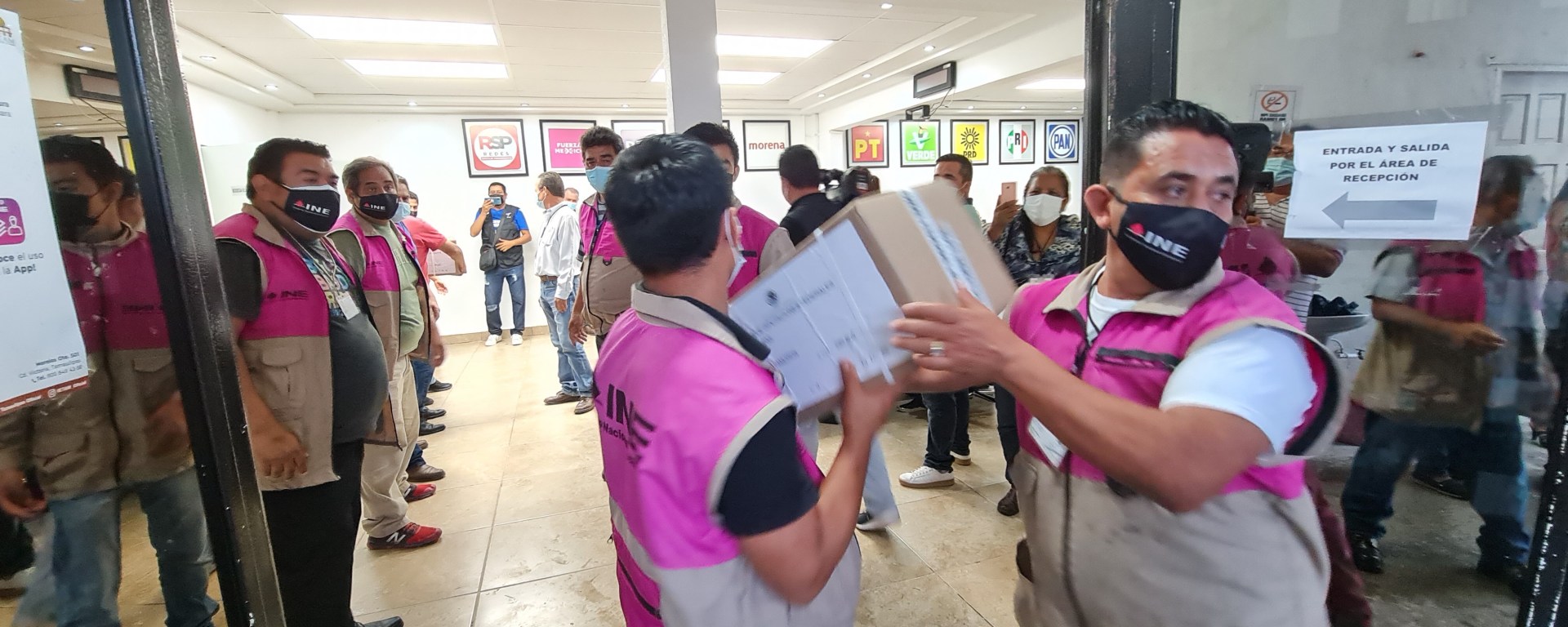 Llegaron a Matamoros las 338 mil boletas elecctorales con las que se podrán elegir a la diputada federal por el distrito 04 electoral, por lo que fueron descargadas por personal de capacitación electoral.El camión de mundanza llegó hasta la zona centro de la ciudad donde se ubica el distrito 04, el cual venía custodiado por el elementos de Tránisto; Policía Estatal y la SEDENA, quienes guiaron la unidad.La boletas electorales fueron introducidas en una bodega que tienen en el Consejo Electoral del INE, mismas que son resguadadas por personal de la Marina Armada de México.Enrique Castañeda Espinosa, consejero presidente de 04 distrito electoral, informó que estos paquetes llegaron completos por lo que ahora procederán a sellarlos desde el domingo para después conformar los paquetes por casillas electorales.»Cabe señalar que todo esto lo hicimos en presencia de los consejeros electorales; además de los Partidos Políticos y ustedes como medios de comunicación», expresó.El consejero presidente destacó la importante labor que realizan los capacitadores electorales quienes ayudaron a bajar los paquetes electorales, además de hace el sellado las boletas y conformar los paquetes de las casillas.