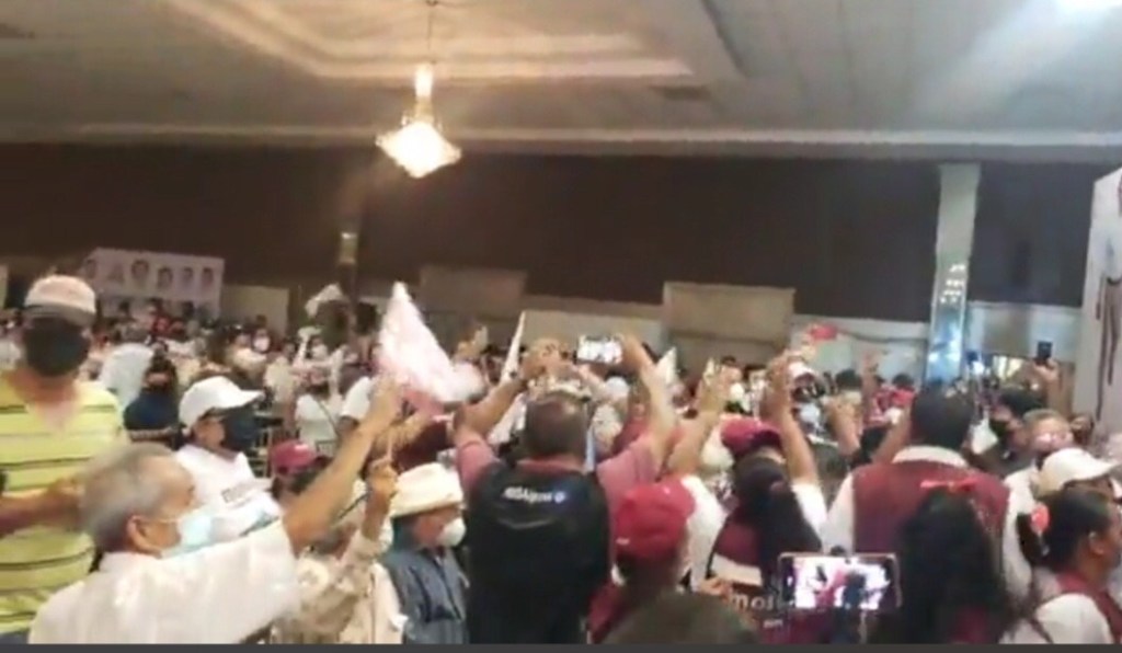 Miembros y simpatizantes de MORENA encabezados por la diputada Leticia Sánchez Guillermo, «reventaron» la toma de protesta de la estructura electoral que realizó el dirigente nacional Mario Delgado Carrillo.