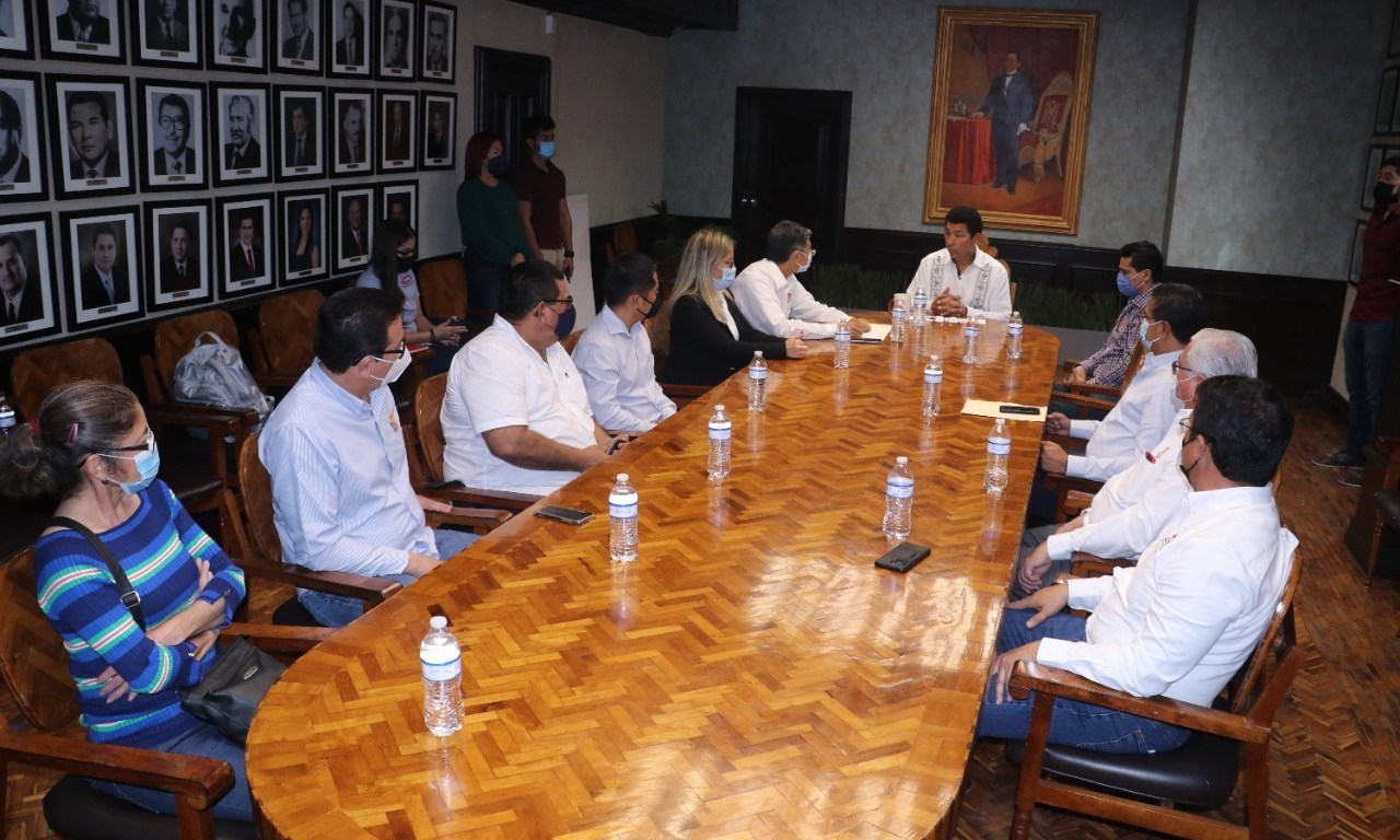 Por parte del Gobierno Municipal estuvieron presentes en la reunión, los Secretarios del Ayuntamiento, Carlos Ballesteros Gálvez y de Desarrollo Urbano y Ecología, Marco Antonio Hernández Acosta, quienes junto con el Alcalde firmaron un convenio de colaboración con la CMIC para capacitación.