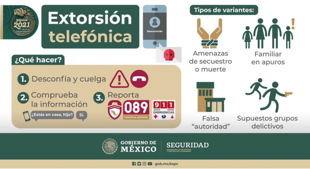 La compaña está dirigida para casos de extorsión telefónica que pueden ser por amenazas de secuestro o muerte de un familiar; por una falsa autoridad; o llamada de supuestos grupos delictivos.