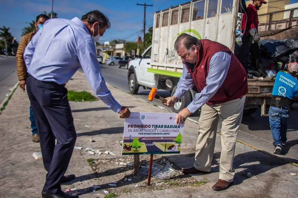 La instalación de los citados anuncios con la leyenda “Prohibido tirar basura en áreas verdes y camellones” ¡Por un Matamoros Limpio! están a cargo de la Secretaría de Servicios Públicos Municipales y las dependencias que la integran como Limpieza Pública y Espacios Públicos.