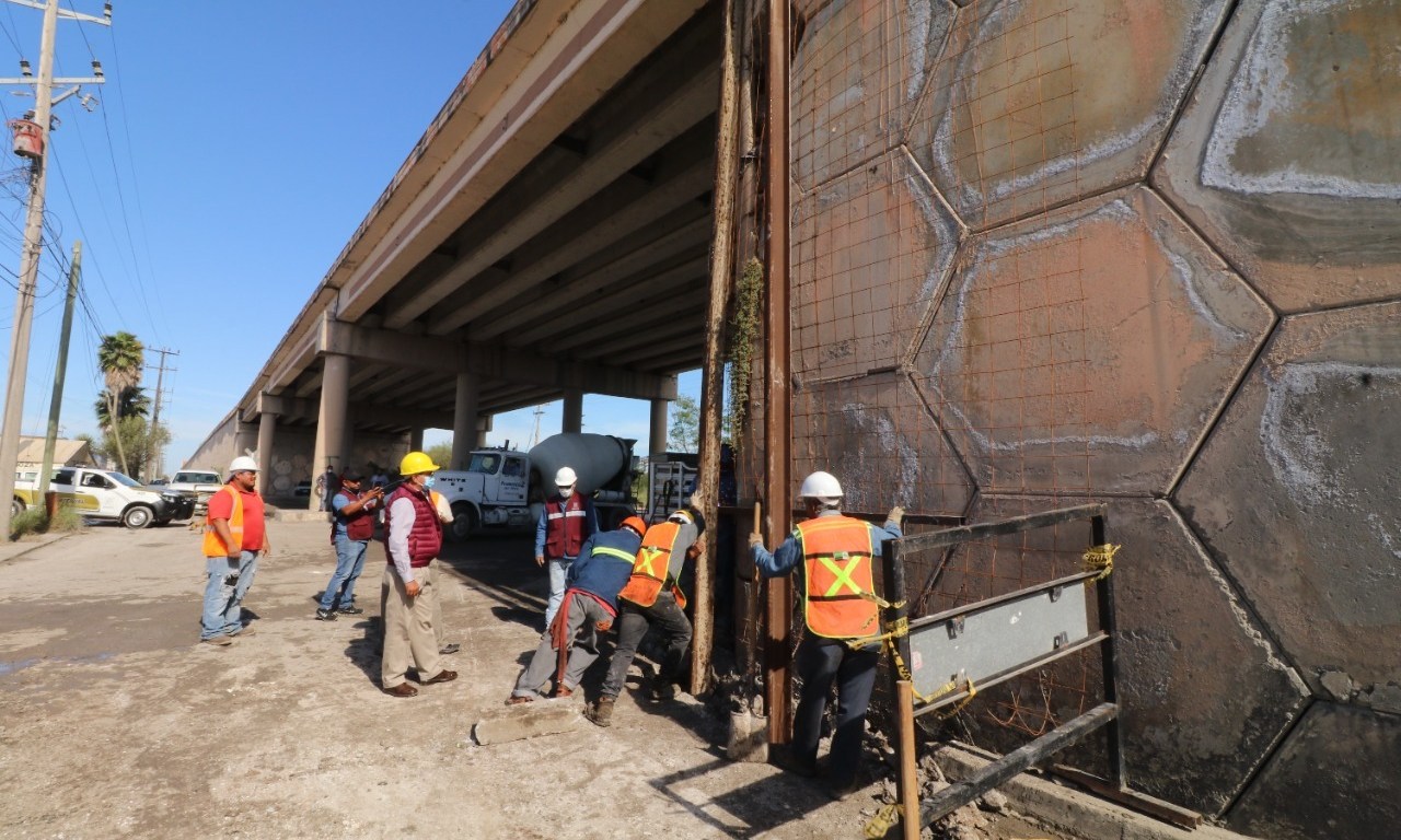 Donde se detectaron los daños explicó, fue en uno de los muros que son la fachada del puente, los cuales están rellenos de tierra; para dar solución, esos huecos que quedaron a causa de que la lluvia arrastró la tierra, ahora están siendo rellenados con material de concreto.