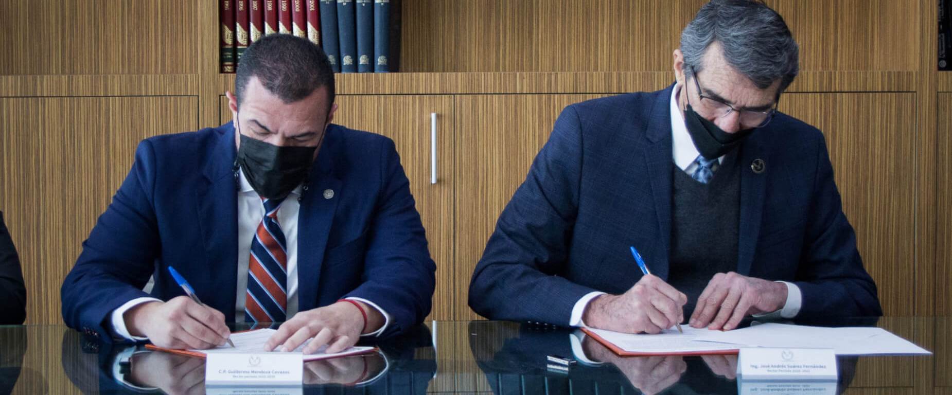 En su primera actividad como Rector de la Universidad Autónoma de Tamaulipas (UAT), el C.P. Guillermo Mendoza Cavazos presidió con el Ing. José Andrés Suárez Fernández el acto protocolario de firma de entrega-recepción con motivo del cambio de la administración rectoral en la máxima casa de estudios de la entidad.