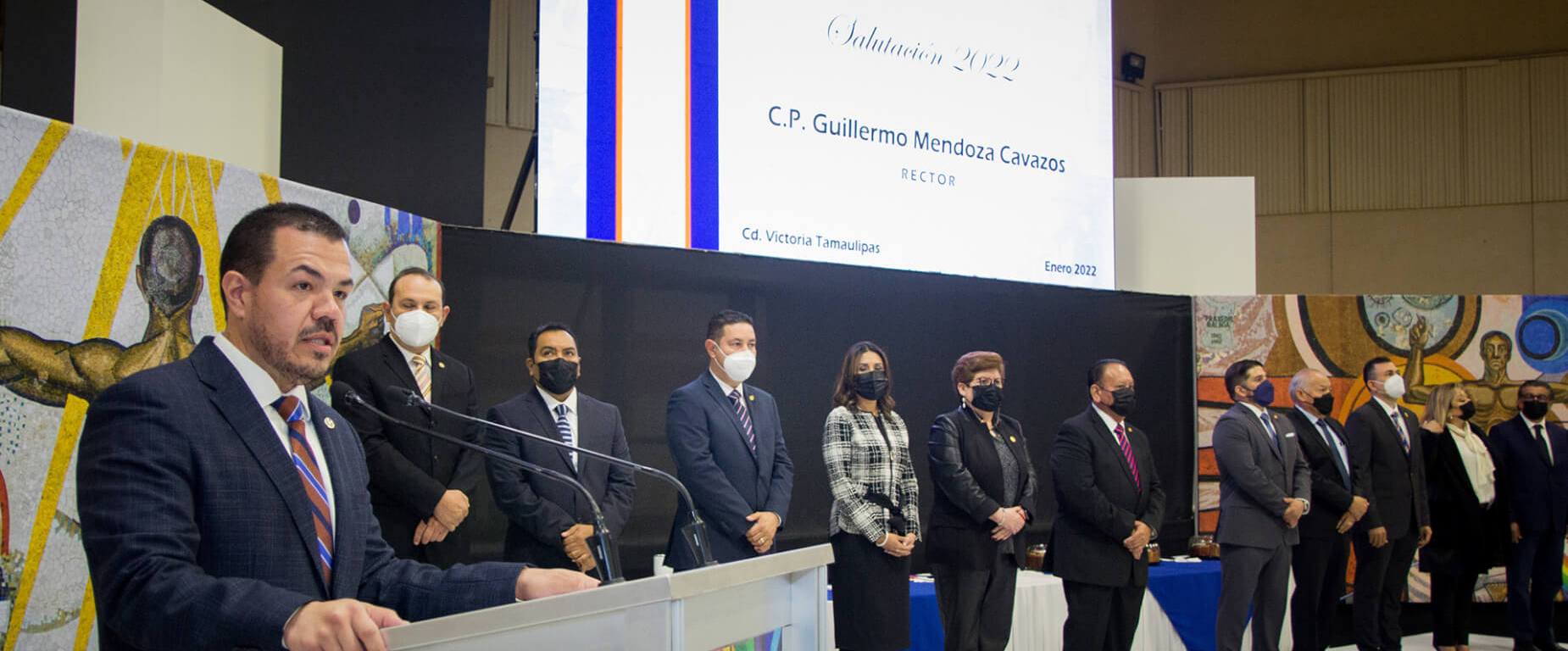 El C. P. Guillermo Mendoza Cavazos, Rector de la Universidad Autónoma de Tamaulipas (UAT), convocó a unir esfuerzos y voluntades en el inicio de este nuevo año y de una nueva gestión rectoral, que plantea grandes retos y oportunidades para seguir creciendo y siendo fuertes en la máxima casa de estudios de la entidad.