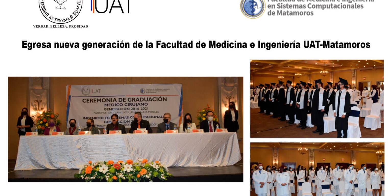 La Facultad de Medicina e Ingeniería en Sistemas Computacionales de Matamoros (FMEISCM) de la Universidad Autónoma de Tamaulipas (UAT) entregó una nueva generación de profesionales comprometidos con el desarrollo de la sociedad.
