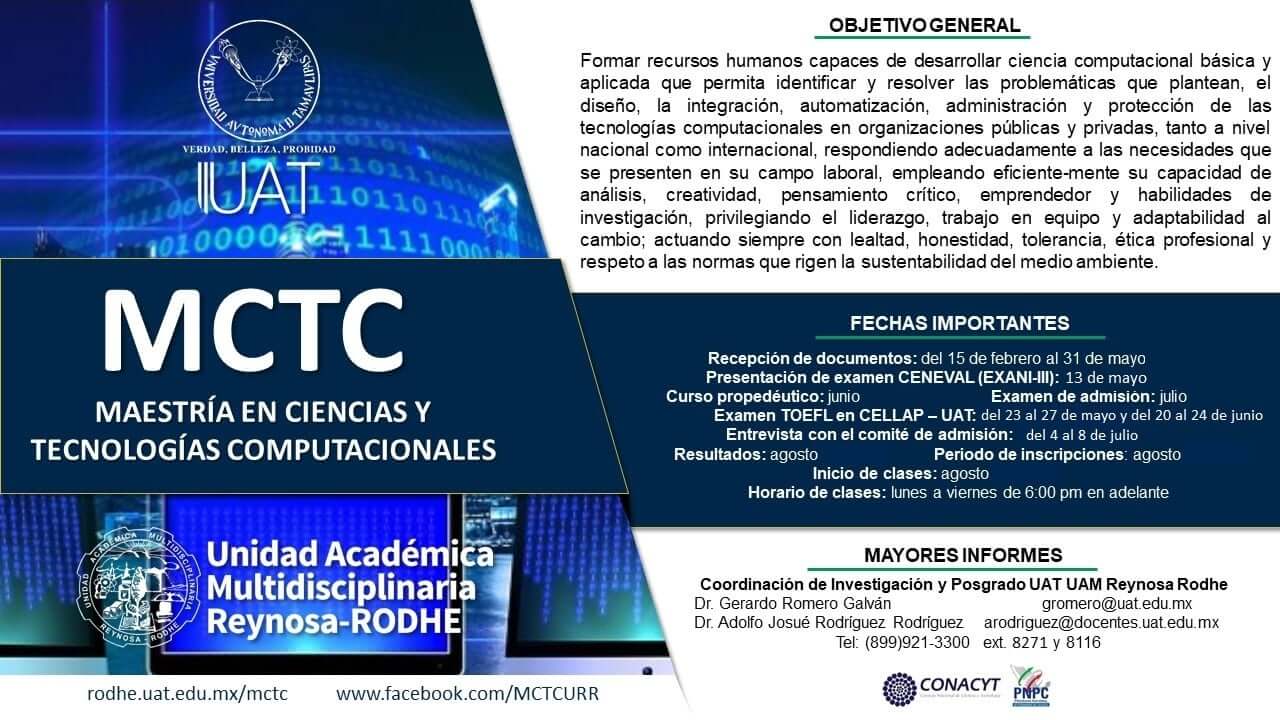 La Maestría en Ciencias y Tecnologías Computacionales que imparte la Universidad Autónoma de Tamaulipas (UAT) en la Unidad Académica Multidisciplinaria Reynosa Rodhe (UAMRR) obtuvo la renovación de su acreditación por el Programa Nacional de Posgrados de Calidad (PNPC).