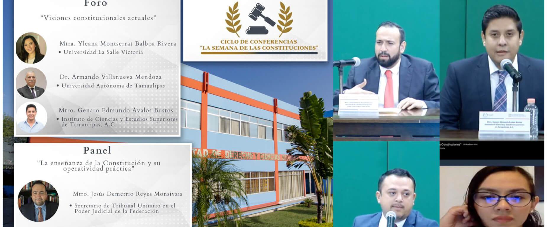 La Universidad Autónoma de Tamaulipas (UAT), a través de la Facultad de Derecho y Ciencias Sociales Victoria (FDCSV), realizó el ciclo de conferencias “La semana de las constituciones”, en conmemoración del 105 aniversario de la Constitución Política de los Estados Unidos Mexicanos y el 101 aniversario de la Constitución Política del Estado de Tamaulipas.