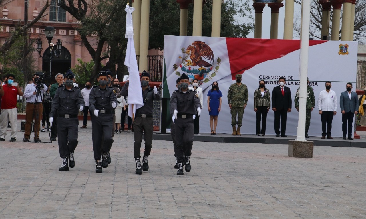 El izamiento de bandera correspondió a los elementos de la Marina; en tanto que la lectura de las efemérides, el valor del mes y juramento a la bandera, estuvo a cargo de directivos de la Secretaría de Desarrollo y Bienestar Social.