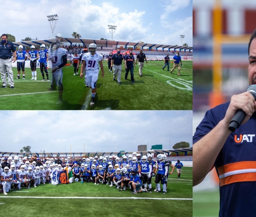 Teniendo como escenario el remodelado Estadio “Eugenio Alvizo Porras” del Centro Universitario Victoria, el C.P. Guillermo Mendoza Cavazos, Rector de la Universidad Autónoma de Tamaulipas (UAT), puso en marcha el torneo 2022 categoría intermedia de la Organización Nacional Estudiantil de Futbol Americano Estudiantil (ONEFA). El Rector Mendoza Cavazos dio la patada inicial del encuentro entre los Correcaminos de la UAT y los Halcones de la … Continúa leyendo ⚠️Rector de la UAT inaugura torneo 2022 de la ONEFA en el centro universitario Victoria