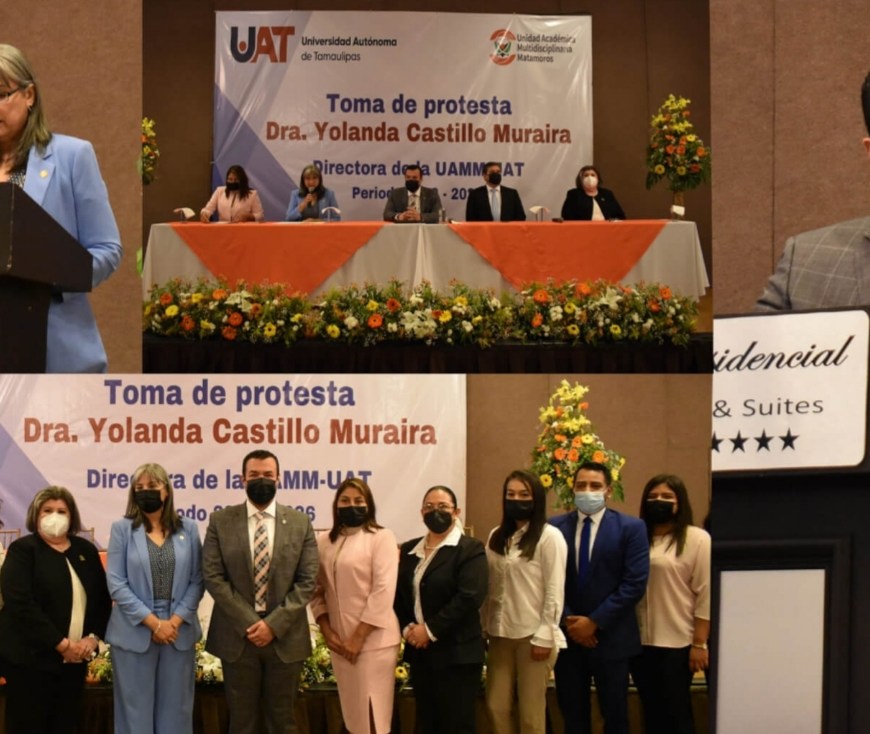 El Rector de la Universidad Autónoma de Tamaulipas (UAT), C. P. Guillermo Mendoza Cavazos, encabezó la ceremonia de toma de protesta de la Dra. Yolanda Castillo Muraira, como Directora de la Unidad Académica Multidisciplinaria Matamoros (UAMM) para el período 2022-2026. En evento realizado en la ciudad de Matamoros, el C. P. Mendoza Cavazos estuvo acompañado del Dr. Gustavo Gutiérrez Sánchez, Director saliente de la UAMM, … Continúa leyendo ⚠️Asume la Mtra. Yolanda Castillo la Dirección de la UAM-Matamoros