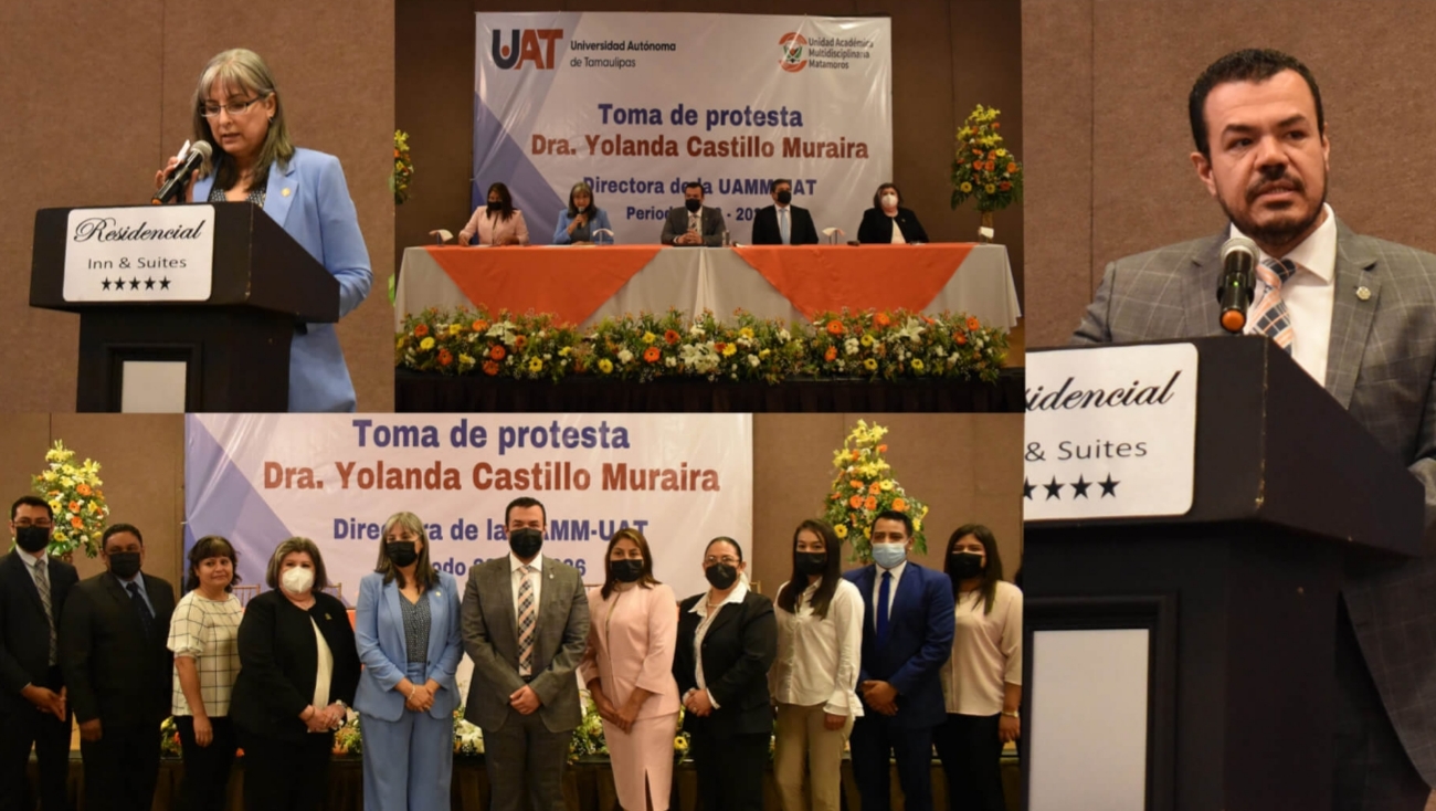 El Rector de la Universidad Autónoma de Tamaulipas (UAT), C. P. Guillermo Mendoza Cavazos, encabezó la ceremonia de toma de protesta de la Dra. Yolanda Castillo Muraira, como Directora de la Unidad Académica Multidisciplinaria Matamoros (UAMM) para el período 2022-2026.