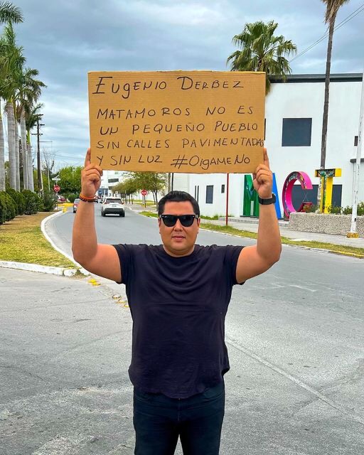 Durante el fin de semana, el empresario de Matamoros salió en un publicación con una cartulina invitando a Derbez a que visite Matamoros para que vea que no es un pueblo.