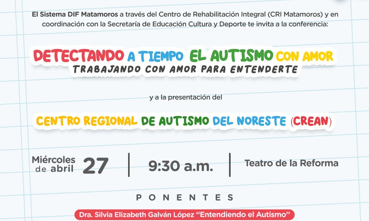 El Sistema DIF Matamoros estará llevando a cabo una conferencia sobre el tema del Autismo.