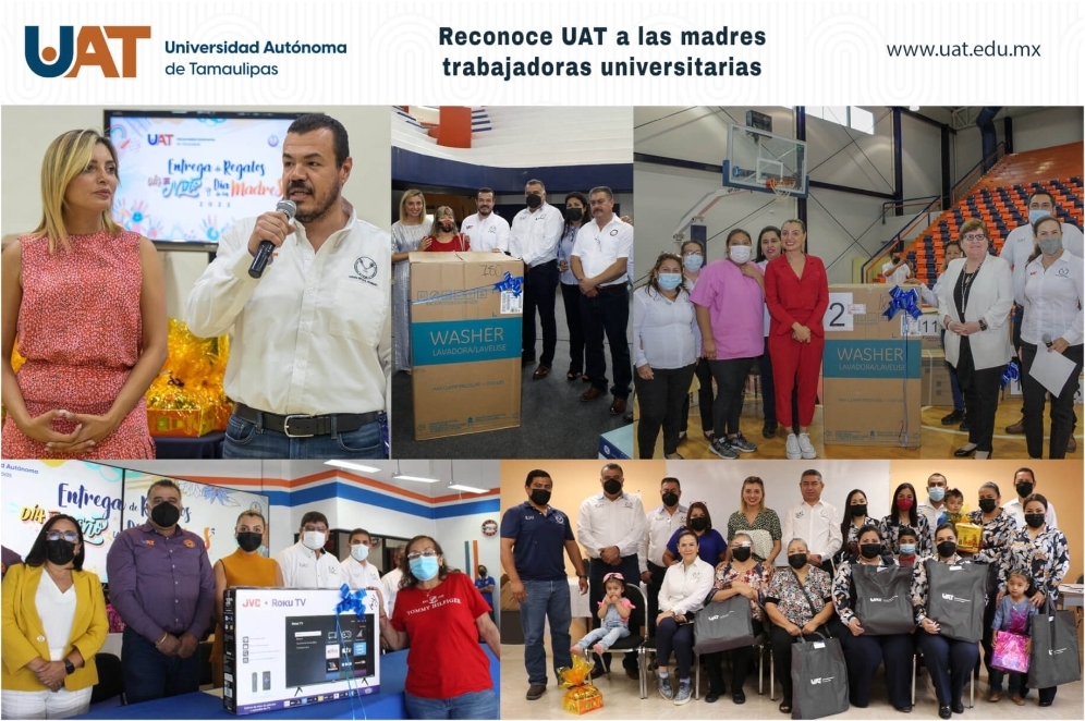 Con motivo de la celebración del Día de las Madres, el C. P. Guillermo Mendoza Cavazos, Rector de la Universidad Autónoma de Tamaulipas (UAT), hizo un reconocimiento a las madres trabajadoras universitarias por la entrega y compromiso en sus hogares y en su extraordinario desempeño laboral.